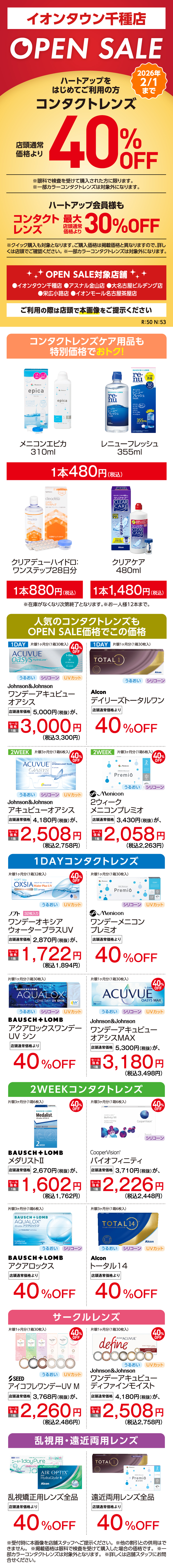 イオンタウン千種に準じる ※水曜日はケア用品・Eyeデータ登録済の使い捨てコンタクトレンズの販売のみとなります。