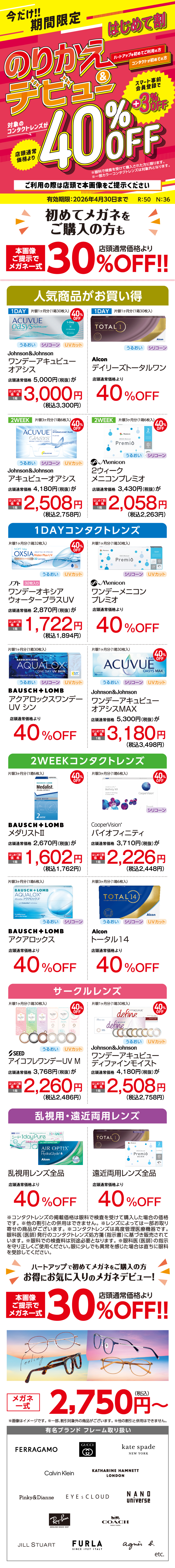 ※コンタクトレンズのご使用が初めての方は、午前・午後ともに受付終了の45分前までにお越しください。