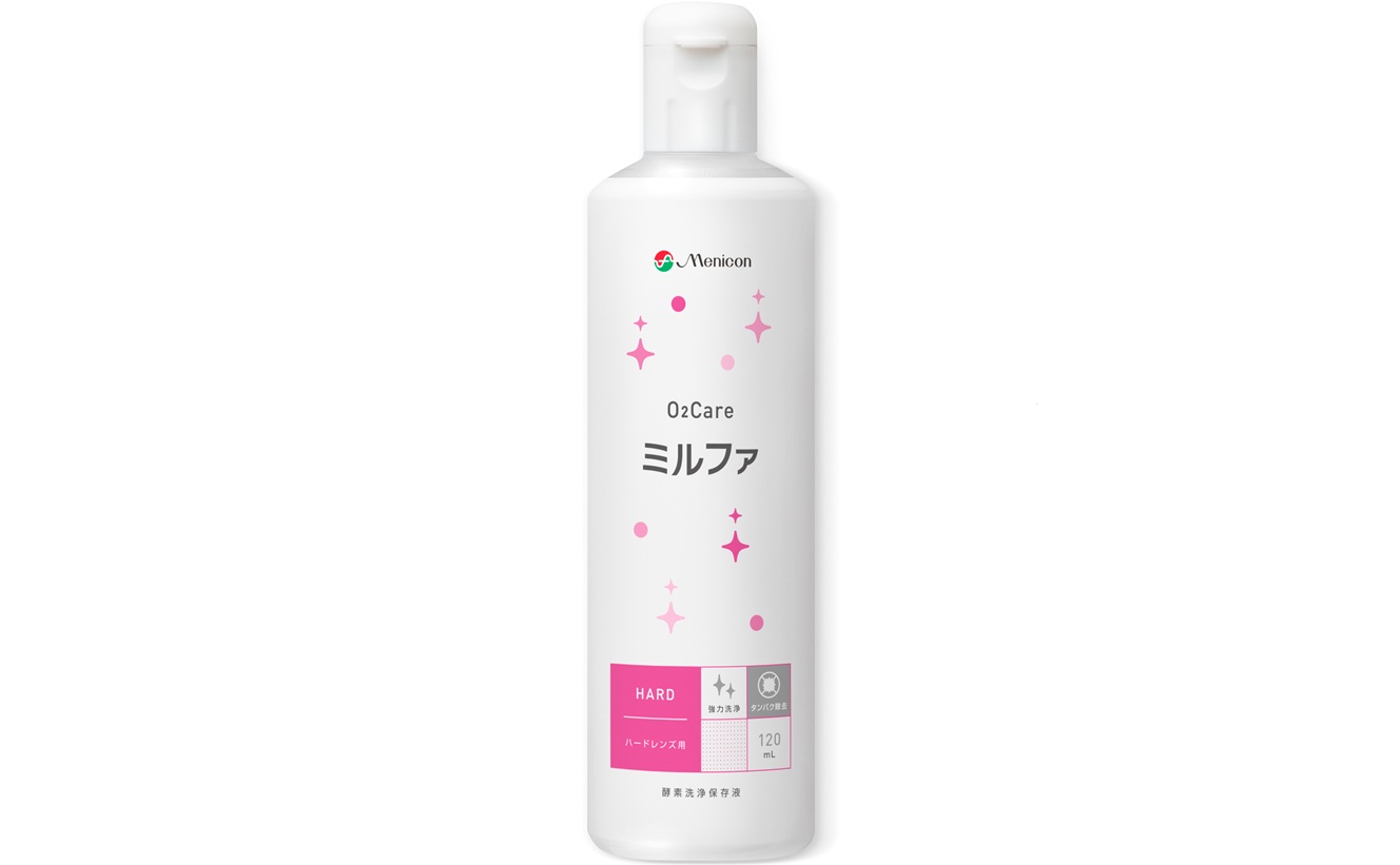 洗浄・保存・タンパク除去まで1本でできるメニコン「抗菌O2ケアミルファ」なら、 高い洗浄効果はもちろん、さらに抗菌成分配合でより清潔・快適なアイライフをサポートします。