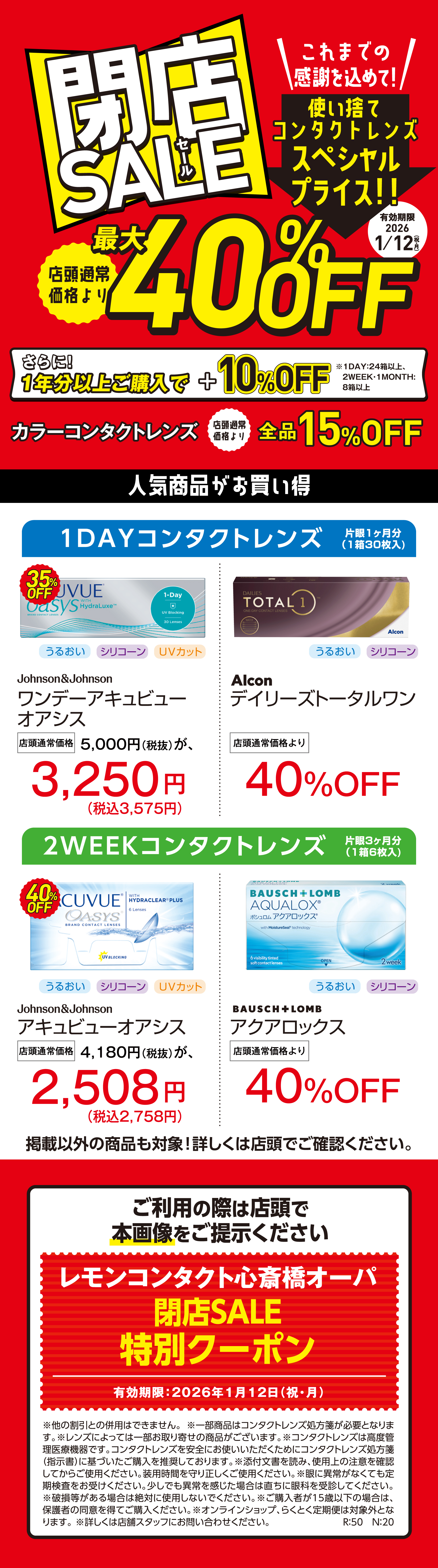レモンコンタクト 心斎橋オーパ店は、20226年1月12日をもちまして閉店の運びとなりました。