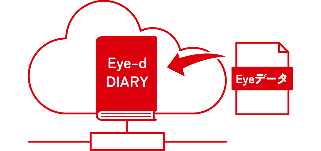 クラウドサーバーに、目のデータを登録し、管理します。眼科で検査・発行されたコンタクトレンズ処方せん(指示書)を「Eyeデータ」として、ハートアップのお店で「Eye-d DIARY」に登録します。